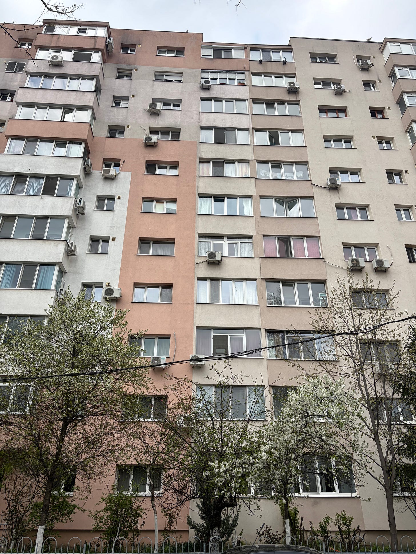 Our Home Exchange in Bucharest was about three miles from the city center, in an area our Blacklane driver described as “the old Soviet bloc.” The buildings matched that description: tall, square, gray, and unmistakably utilitarian (the building in the photo is not where we stayed). Even the stairwell felt untouched by time.
